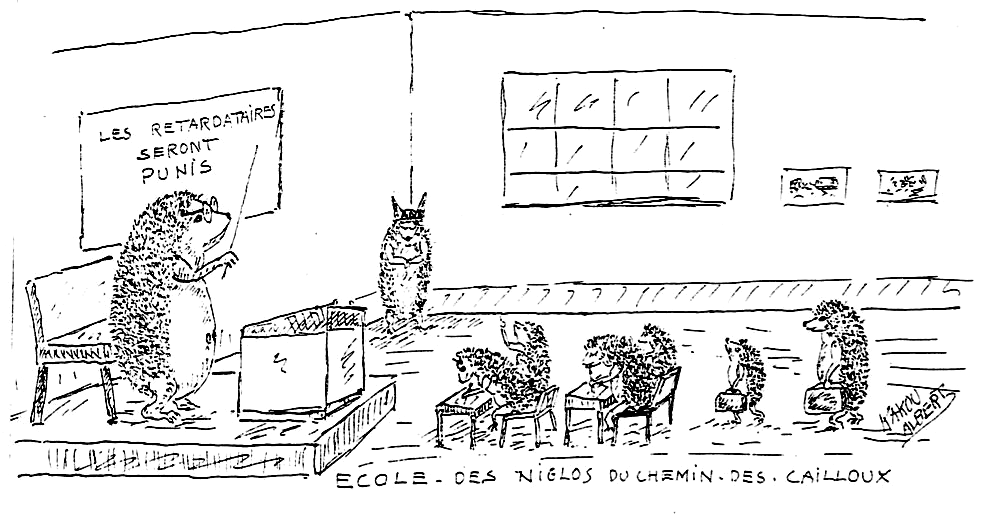 Dessin Albert Mortel, bulletin École et paix 2004, p.32